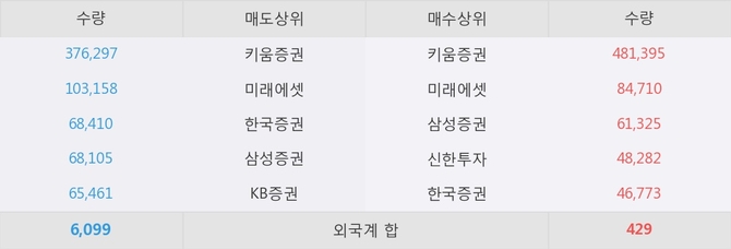 거래원 동향은 미래에셋, 삼성증권 등이 매수 상위 목록에 나타나고 있다.