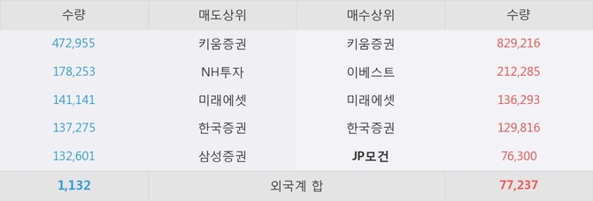 거래원 동향은 JP모건, 미래에셋이 매수 상위 목록에 나타나고 있다.