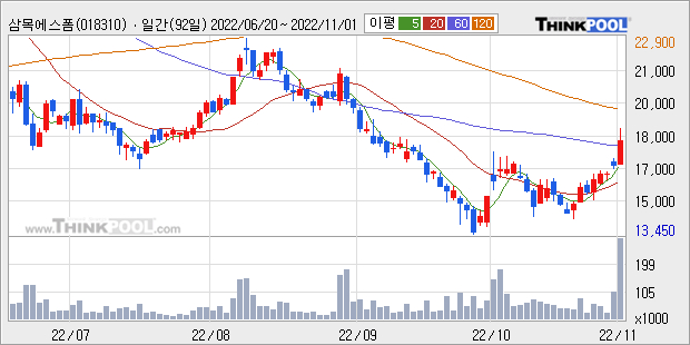 삼목에스폼의 2021년 매출액은 전년대비 76.0% 늘어난 2049억원이고, 영업이익은 흑자전환해서 106억원을 기록했다. 이 회사의 매출액 증감률과 영업이익 증감률은 각각 코스닥 하위 1%, 하위 1%에 해당된다.