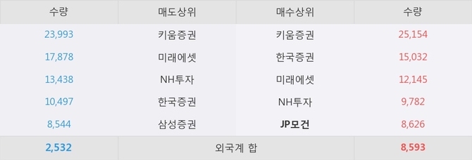 거래원 동향은 JP모건, 미래에셋, NH투자 등이 매수 상위 목록에 나타나고 있다.