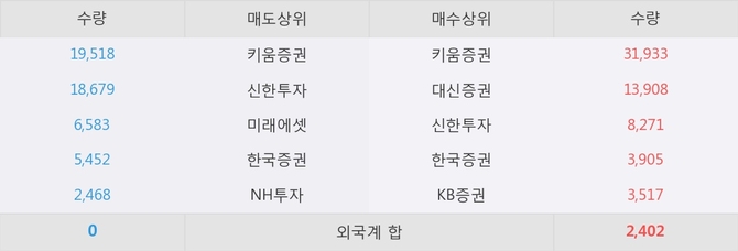 현재 거래원 동향은 키움증권, 대신증권, 신한투자 등이 매수 상위 목록에 나타나고 있다.