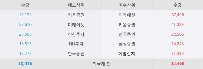 거래원 동향은 메릴린치, 미래에셋, 삼성증권 등이 매수 상위 목록에 나타나고 있다.