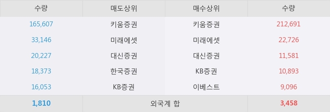 이 시각 주요 거래원은 미래에셋, 키움증권, 대신증권 등이 매수 상위 창구에 자리하고 있다.