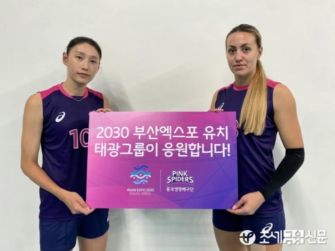 6일 태광그룹에 따르면 지난달 25일 인천 삼산월드체육관에서 열린 흥국생명 핑크스파이더스 배구단과 페퍼저축은행 AI페퍼스 배구단의 홈 개막전에서 '2030 세계박람회 부산 유치를 태광그룹이 응원합니다!'라고 적힌 대형 플래카드를 설치했다.