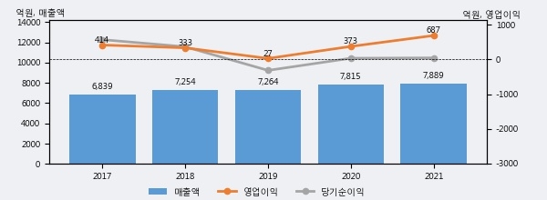 최근 3년간의 실적을 살펴보면 안정적 성장세를 보이고 있다. 최근 3년간 매출로 볼 때 매년 꾸준히 증가하고 있다. 다만 최근에 그 증가폭이 다소 감소하고 있다.