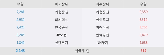거래원 동향은 미래에셋, NH투자 등이 매수 상위 목록에 나타나고 있다. 한편, 매도 창구 상위에는 JP모건이 눈에 띄고 있다.