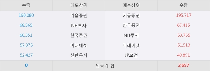 거래원 동향은 JP모건, NH투자, 미래에셋 등이 매수 상위 목록에 나타나고 있다.