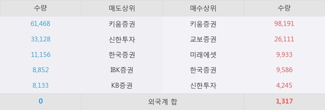 이 시각 주요 거래원은 미래에셋, 키움증권, 교보증권 등이 매수 상위 창구에 자리하고 있다.