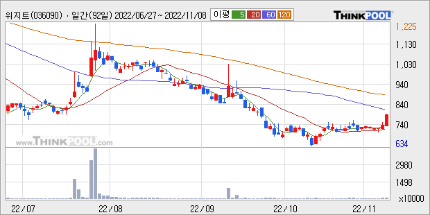 위지트의 2021년 매출액은 312억으로 전년대비 3.7% 상승했고, 영업이익은 1억으로 흑자전환했다. 이 회사의 매출액 증감률과 영업이익 증감률은 각각 코스닥 하위 32%, 상위 24%에 해당된다.