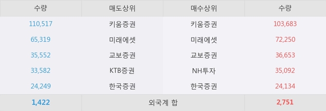 거래원 동향은 미래에셋, NH투자 등이 매수 상위 목록에 나타나고 있다.