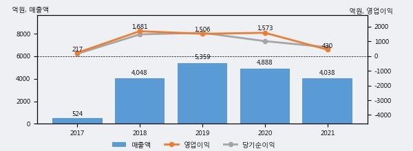 펄어비스의 2021년 매출액은 4038억으로 전년대비 -17.4% 하락했고, 영업이익 역시 430억으로 전년대비 -72.7% 하락했다. 이 회사의 매출액 증감률과 영업이익 증감률은 각각 코스닥 하위 12%, 하위 18%에 해당된다.