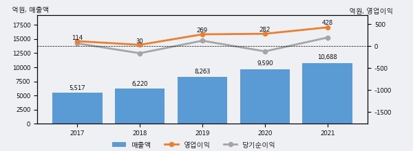 최근 3년간의 실적을 살펴보면 안정적 성장세를 보이고 있다. 최근 3년간 매출로 볼 때 매년 꾸준히 증가하고 있다. 다만 최근에 그 증가폭이 다소 감소하고 있다.