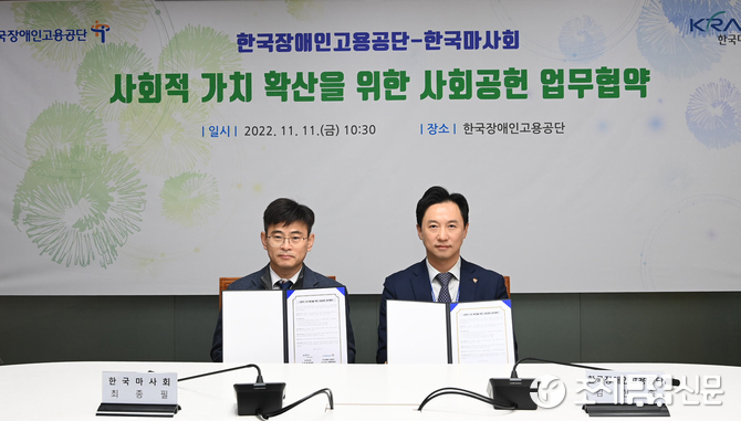 (조세금융신문=송기현 기자) 한국마사회(회장 정기환)는 지난 11일 한국장애인고용공단(이사장 조향현)과 사회적 가치 실현을 위한 사회공헌 업무 협약을 맺었다고 13일 밝혔다.