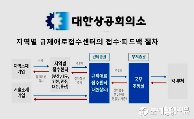 (조세금융신문=송기현 기자) 대한상공회의소가 서울, 부산, 대구, 인천, 광주, 대전, 울산에 있는 상공회의소에 지역별 규제애로접수센터를 설치 운영한다.
