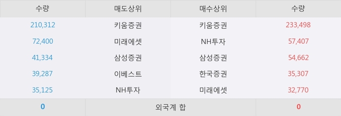 거래원 동향은 NH투자, 삼성증권, 미래에셋 등이 매수 상위 목록에 나타나고 있다.
