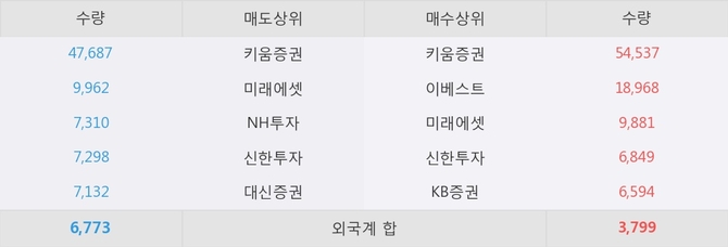 이 시각 주요 거래원은 미래에셋, 키움증권, 이베스트 등이 매수 상위 창구에 자리하고 있다.