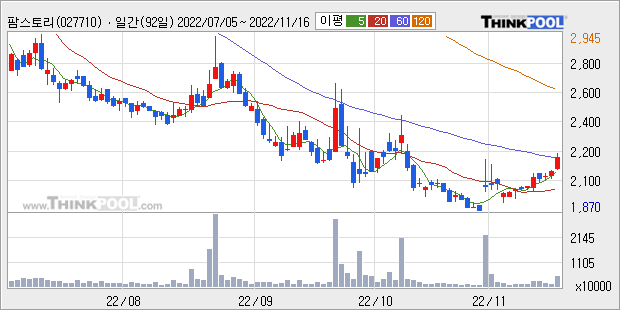 팜스토리의 2021년 매출액은 전년대비 7.1% 늘어난 1조 339억원이고, 영업이익 또한 전년대비 13.9% 늘어난 251억원을 기록했다. 이 회사의 매출액 증감률과 영업이익 증감률은 각각 코스닥 하위 38%, 하위 48%에 해당된다.