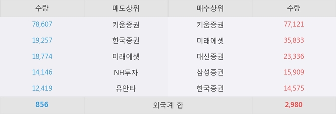 거래원 동향은 미래에셋, 삼성증권 등이 매수 상위 목록에 나타나고 있다.