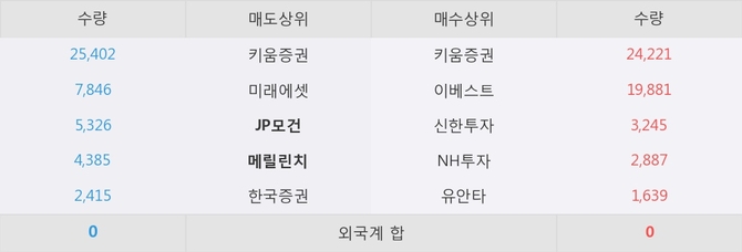 이 시각 주요 거래원은 NH투자, 키움증권, 이베스트 등이 매수 상위 창구에 자리하고 있다. 한편, 매도 창구 상위에는 JP모건과 메릴린치가 눈에 띄고 있다.
