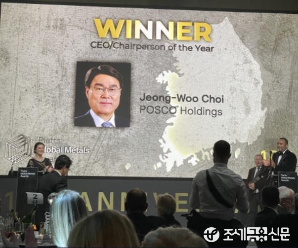 (조세금융신문=구재회 기자) 포스코그룹은 20일 최정우 회장이 제10회 '글로벌 메탈 어워즈'(Global Metals Awards)에서 '올해의 CEO'로 선정됐다고 밝혔다.