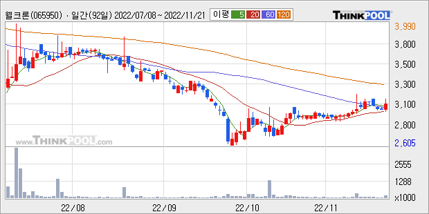 웰크론의 2021년 매출액은 전년대비 17.7% 늘어난 3886억원이고, 영업이익은 전년대비 -33.3% 줄어든 132억원을 기록했다. 이 회사의 매출액 증감률과 영업이익 증감률은 각각 코스닥 상위 43%, 하위 28%에 해당된다.