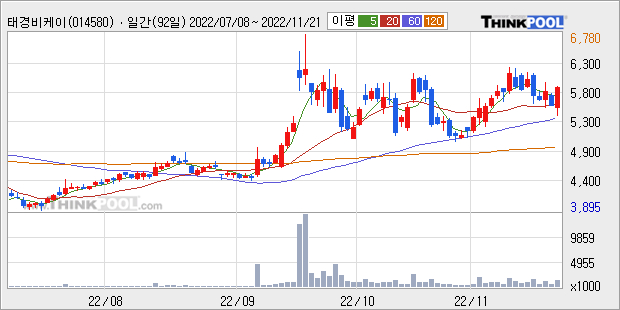 태경비케이는 2021년 매출액 1952억원과 영업이익 196억원을 기록했다. 전년대비 매출은 18.0%, 영업이익은 81.5% 각각 상승했다. 이 회사의 매출액 증감률과 영업이익 증감률은 각각 코스피 상위 39%, 상위 31%에 해당된다.