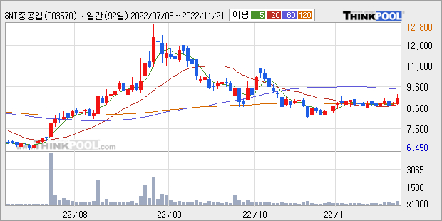 SNT중공업의 2021년 매출액은 3360억으로 전년대비 11.3% 상승했고, 영업이익 또한 206억으로 전년대비 51.1% 상승했다. 이 회사의 매출액 증감률과 영업이익 증감률은 각각 코스피 하위 45%, 상위 38%에 해당된다.