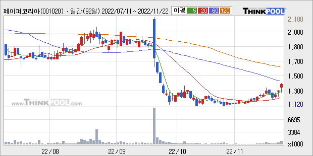 페이퍼코리아의 2021년 매출액은 전년대비 -10.1% 줄어든 4353억원이고, 영업이익 역시 전년대비 -9.1% 줄어든 315억원을 기록했다. 이 회사의 매출액 증감률과 영업이익 증감률은 각각 코스피 하위 8%, 하위 33%에 해당된다.