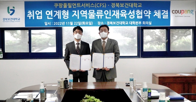 쿠팡의 물류 자회사 쿠팡풀필먼트서비스가 경북보건대학교와 지역 청년인재 양성과 일자리 창출을 위한 산학협력을 22일 맺었다.
