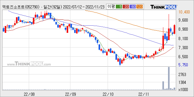 액토즈소프트의 2021년 매출액은 583억으로 전년대비 22.6% 상승했고, 영업이익 또한 254억으로 전년대비 42.2% 상승했다. 이 회사의 매출액 증감률과 영업이익 증감률은 각각 코스닥 상위 35%, 상위 41%에 해당된다.
