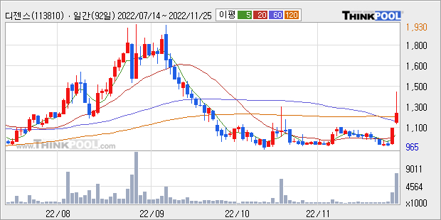 디젠스의 2021년 매출액은 전년대비 -14.7% 줄어든 698억원이고, 영업이익은 전년대비 198.3% 늘어난 36억원을 기록했다. 이 회사의 매출액 증감률과 영업이익 증감률은 각각 코스닥 하위 13%, 상위 14%에 해당된다.