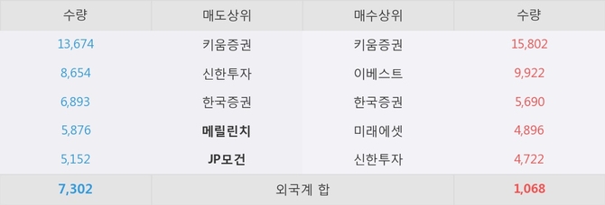 이 시각 주요 거래원은 미래에셋, 키움증권, 이베스트 등이 매수 상위 창구에 자리하고 있다. 한편, 매도 창구 상위에는 메릴린치와 JP모건이 눈에 띄고 있다.