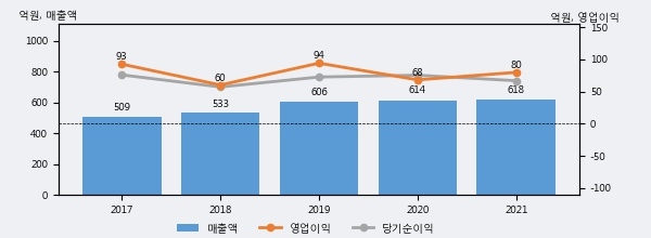 최근 3년간의 실적을 살펴보면 안정적 성장세를 보이고 있다. 최근 3년간 매출로 볼 때 매년 꾸준히 증가하고 있다. 다만 최근에 그 증가폭이 다소 감소하고 있다.