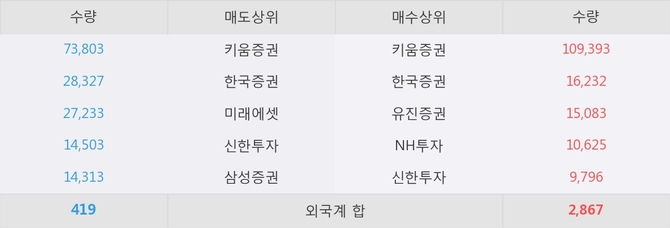 이 시각 주요 거래원은 NH투자, 키움증권, 한국증권 등이 매수 상위 창구에 자리하고 있다.