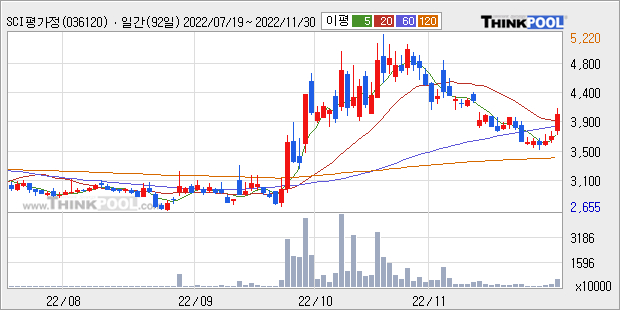 일봉 차트의 모습은 단기 이평선이 역배열을 만들며 조정을 받다가 다시 상승으로 돌아선 모습이다. 최근 이 종목의 차트에서 삼선전환도(양전환) 등의 특이사항이 발생했다.