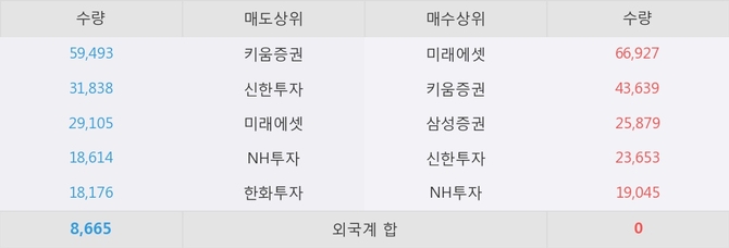 거래원 동향은 미래에셋, 삼성증권, NH투자 등이 매수 상위 목록에 나타나고 있다.