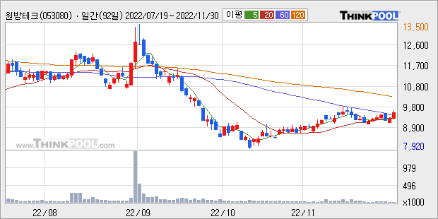 원방테크의 2021년 매출액은 3111억으로 전년대비 -4.8% 하락했고, 영업이익 역시 137억으로 전년대비 -36.7% 하락했다. 이 회사의 매출액 증감률과 영업이익 증감률은 각각 코스닥 하위 20%, 하위 27%에 해당된다.