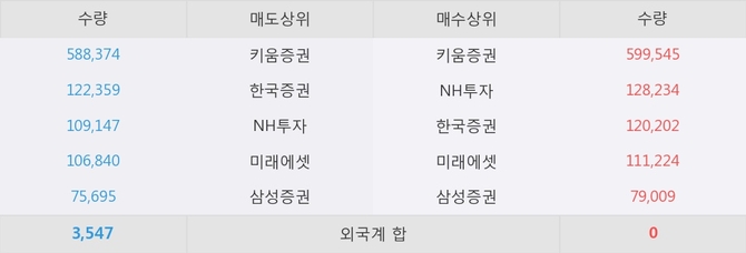 거래원 동향은 NH투자, 미래에셋, 삼성증권 등이 매수 상위 목록에 나타나고 있다.