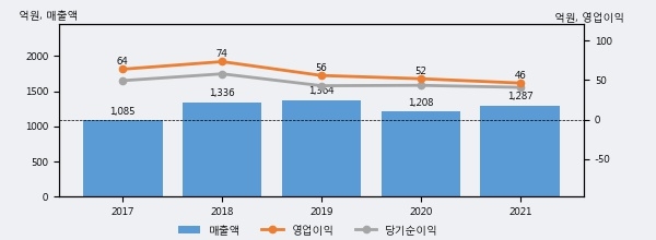 지에스이의 2021년 매출액은 전년대비 6.5% 늘어난 1287억원이고, 영업이익은 전년대비 -10.6% 줄어든 46억원을 기록했다. 이 회사의 매출액 증감률과 영업이익 증감률은 각각 코스닥 하위 37%, 하위 35%에 해당된다.