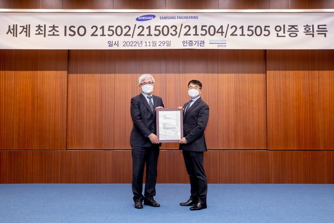 삼성엔지니어링은 프로젝트 분야 ISO 21502~21505 4종을 동시에 인증 받았으며, 프로젝트 분야 국제표준 통합 인증은 이번이 세계 최초다. 인증획득 기념식은 삼성엔지니어링 본사인 상일동 GEC(Global Engineering Center)에서 진행됐으며, 삼성엔지니어링 플랜트사업본부장 남궁홍 부사장, DNV 코리아 이장섭 대표 등이 참석했다.