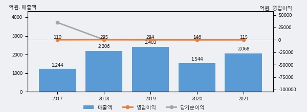 BGF의 2021년 매출액은 전년대비 33.9% 늘어난 2068억원이고, 영업이익은 전년대비 -21.4% 줄어든 115억원을 기록했다. 이 회사의 매출액 증감률과 영업이익 증감률은 각각 코스피 상위 18%, 하위 25%에 해당된다.