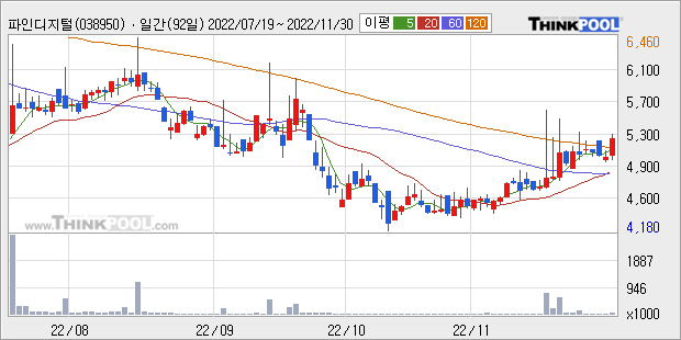 파인디지털의 2021년 매출액은 1003억으로 전년대비 -4.0% 하락했고, 영업이익 역시 25억으로 전년대비 -28.0% 하락했다. 이 회사의 매출액 증감률과 영업이익 증감률은 각각 코스닥 하위 22%, 하위 30%에 해당된다.