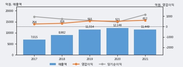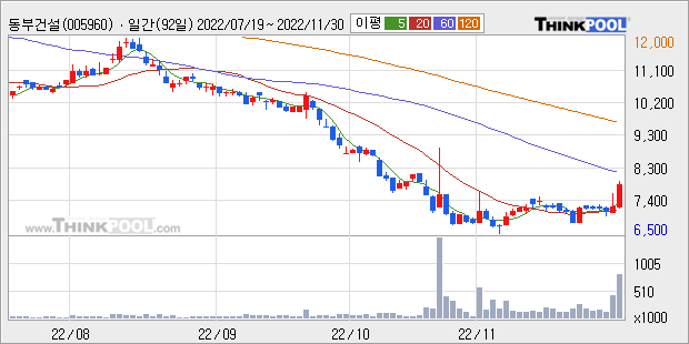 동부건설의 2021년 매출액은 전년대비 -5.7% 줄어든 1조 1449억원이고, 영업이익은 전년대비 17.5% 늘어난 612억원을 기록했다. 이 회사의 매출액 증감률과 영업이익 증감률은 각각 코스피 하위 12%, 하위 48%에 해당된다.