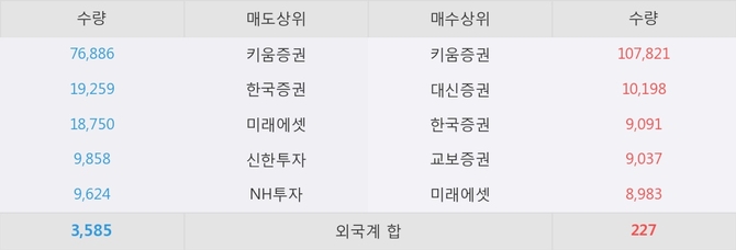 이 시각 주요 거래원은 미래에셋, 키움증권, 대신증권 등이 매수 상위 창구에 자리하고 있다.