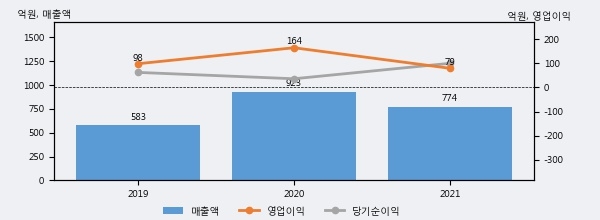 이엔드디의 2021년 매출액은 774억으로 전년대비 -16.1% 하락했고, 영업이익 역시 79억으로 전년대비 -51.8% 하락했다. 이 회사의 매출액 증감률과 영업이익 증감률은 각각 코스닥 하위 1%, 하위 1%에 해당된다.