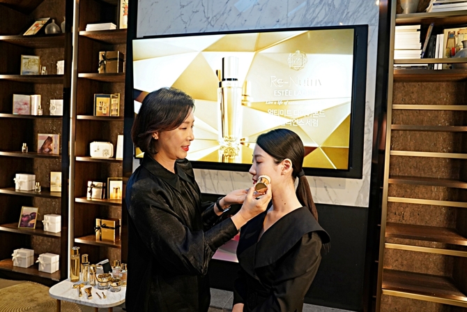 롯데면세점은 에스티로더의 프레스티지 라인 가운데 하나인 ‘리-뉴트리브(RE-NUTRIV)’ 브랜드 스토리를 고객에게 소개했다. 이어 지난 상반기 새롭게 출시한 리뉴트리브 다이아몬드 브릴리언스 세럼과 아이세럼, 크림 등의 사용법과 눈 마사지를 시연하고 고객들이 제품을 직접 체험해보는 시간을 가졌다.
