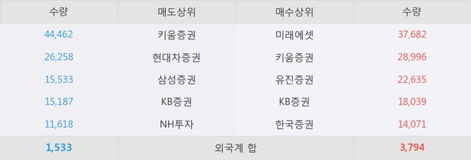 이 시각 주요 거래원은 미래에셋, 키움증권, 유진증권 등이 매수 상위 창구에 자리하고 있다.