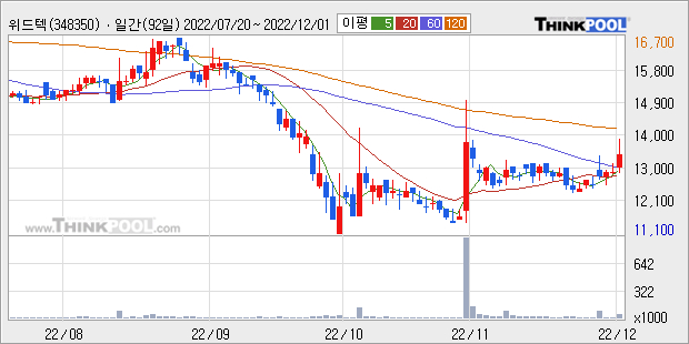 위드텍의 2021년 매출액은 683억으로 전년대비 22.8% 상승했고, 영업이익은 88억으로 전년대비 -0.3% 하락했다. 이 회사의 매출액 증감률과 영업이익 증감률은 각각 코스닥 상위 35%, 하위 40%에 해당된다.