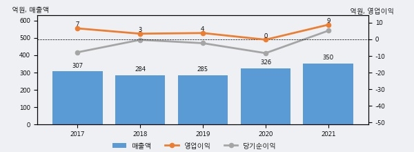 최근 3년간의 실적을 살펴보면 안정적 성장세를 보이고 있다. 최근 3년간 매출로 볼 때 매년 증가하고 있다. 다만 최근에 그 증가폭이 다소 감소하고 있다.