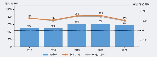 옵투스제약은 2021년 매출액 573억원과 영업이익 105억원을 기록했다. 전년대비 매출은 -5.8%, 영업이익은 -32.5% 각각 하락했다. 이 회사의 매출액 증감률과 영업이익 증감률은 각각 코스닥 하위 20%, 하위 28%에 해당된다.